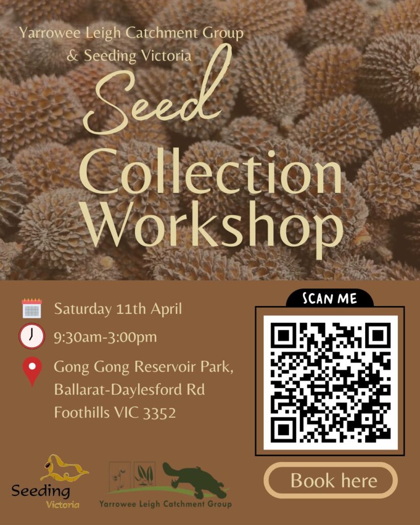 Come along to Seeding Victoria’s headquarters for an educational workshop with Dan Frost. We will learn all about seed collection including techniques, ethics, indigenous species, seed types, local prevenance, seed collection, timing and more. We should also get the chance to participate in a hands-on collection today, weather permitting. Enjoy a catered lunch with gluten free and vegetarian options available. Please wear warm clothes, boots, and bring a water bottle. Feel free to bring your own stationary for note taking.